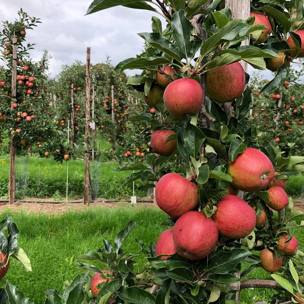 Le port colonnaire et le faible développement du pommier Courson Delfloden conviennent bien au jardin avec peu d’espace, à la culture en bac sur balcon ou terrasse, ou à la confection d’une petite haie fruitière. C’est une variété, très rustique, productive, très résistante à la tavelure et au mildiou. Savoureuse, la pomme Courson est un fruit de forme arrondie, d’un calibre assez gros, à la peau lisse, rouge lumineux sur fond jaune verdâtre, avec peu de lenticelles. Sa chair croquante, blanchâtre et ferme, est très juteuse, fruitée et sucrée, sans acidité. À partir de fin septembre, les fruits se consomment dès la récolte et peuvent se conserver jusqu’en novembre. Avec une forte teneur en sucre, c’est une pomme tonique très agréable à croquer. Excellente en tarte, en compote ou poêlée, la pomme Courson est aussi très appréciée en recettes salées. La présence d’autres variétés de pommiers à proximité va améliorer la pollinisation et donc la production.